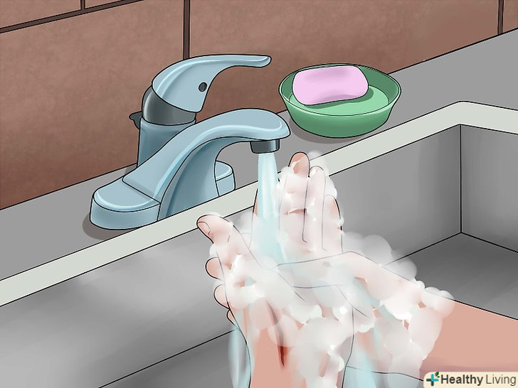 - вимийте руки у теплій воді з милом протягом не менше 20 секунд. Ретельно їх розітріть. [4] якщо поруч немає води і мила, промийте руки дезинфікуючим засобом на основі спирту.