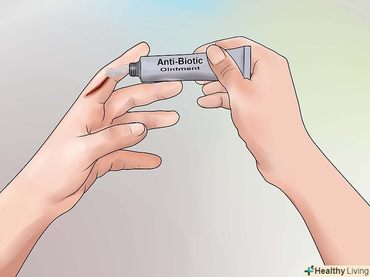 Нанесіть мазь з антибіотиком. Візьміть трохи мазі з антибіотиком, щоб нанести її на рану. Мета полягає в тому, щоб рана залишалася злегка мокрою. Мазь допоможе запобігти зараженню. [12]