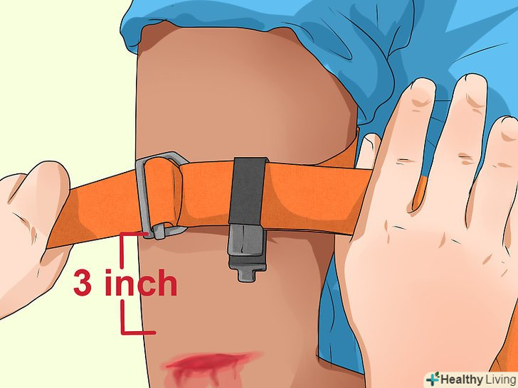 Накладайте на пошкоджену кінцівку джгут лише в крайньому випадку. використовуйте джгут лише тоді, коли інші методи (підведення кінцівки, натискання рукою, пов'язка, що давить) не спрацювали. Палять дуже сильно здавлює артерії і вени. В результаті за межі джгута проникає мала кількість крові, що допомагає зупинити кровотечу з рани. [30] [31]- В якості джгута можна використовувати що-небудь, схоже на медичний джгут, ремінь або довгу смужку тканини. Джгут накладається тільки на кінцівки. Найкраще накладати його на стегно або верхню частину руки; якщо рана знаходиться на стегні або верхній частині руки, слід накладати джгут вище неї на відстані 5-10 сантиметрів. Джгут повинен знаходитися ближче до серця, ніж рана. [32] [33] щоб захистити шкіру, підкладіть під джгут що-небудь, наприклад смужку тканини або одяг потерпілого. Джгут відрізняється від пов'язки, що давить. Він затягується навколо кінцівки дуже туго. При цьому значно зростає ризик відмирання тканин і ішемії. Слід зважити ризики втрати кінцівки і втрати життя. Затягнувши джгут, не знімайте його. [34]