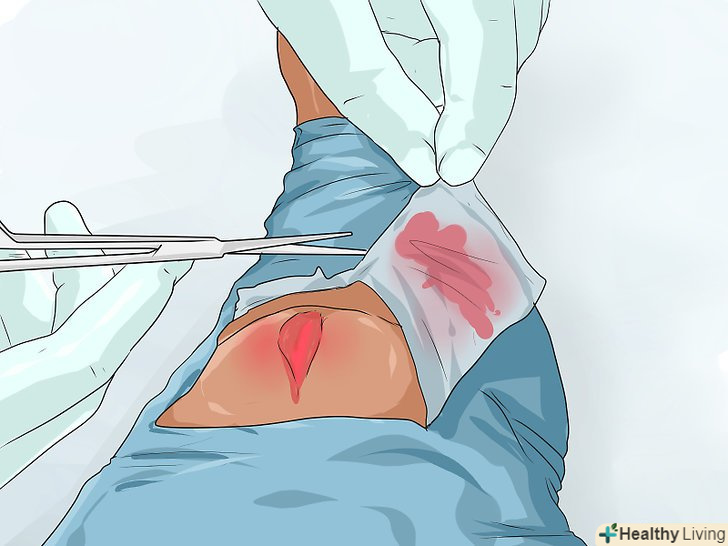 - Не промивайте рану, залишивши це фахівцям. Навіть сама акуратна очищення рани може порушити формуються згустки крові. Серйозні і глибокі рани обробляються зовсім не так, як ми звикли робити це з легкими ранками в повсякденному житті. Намагайтеся не торкатися до рани більше, ніж це необхідно. Просто захистіть рану від подальшого забруднення в тому випадку, якщо навколо потерпілого брудно або в рану можуть потрапити якісь шкідливі речовини. [7]