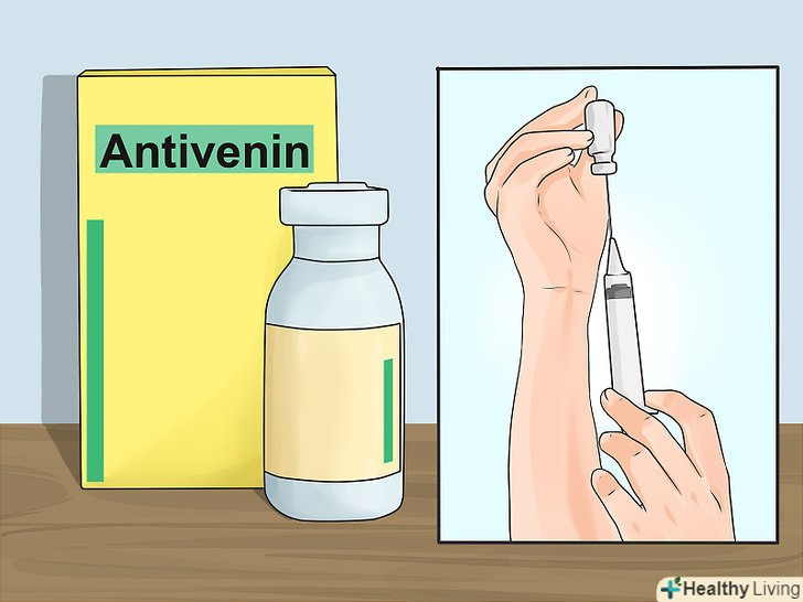 Слід якомога швидше почати давати потерпілому антитоксин проти зміїної отрути. не знімайте пов'язку, що давить, до тих пір, поки медики не дадуть жертві антитоксин. Своєчасне лікування зменшить небезпеку захворювань (серйозних і довготривалих наслідків укусу) і смерті від зміїної отрути. [51]- Антитоксин містить антитіла (клітини крові, що руйнують сторонні об'єкти в організмі) проти конкретного отрути, що виділяється даним видом змій. Його отримують з крові коней або овець, підданих дії цієї отрути. [52]