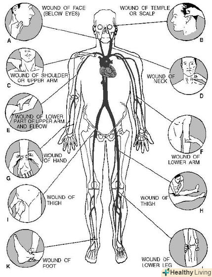 Спробуйте натиснути на артерію-стиснення артерії біля кістки допоможе перешкодити припливу крові до області поранення і зменшить кровотечу. Якщо ви не знаєте, як знайти місце розташування відповідної артерії, продовжуйте натискати прямо на рану, чекаючи прибуття швидкої допомоги.