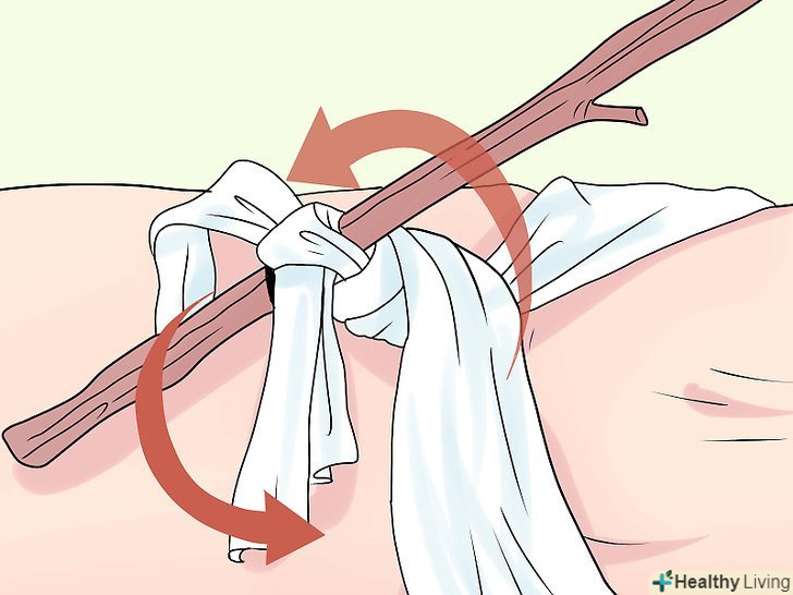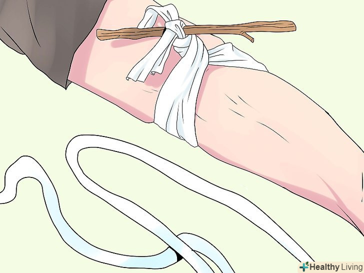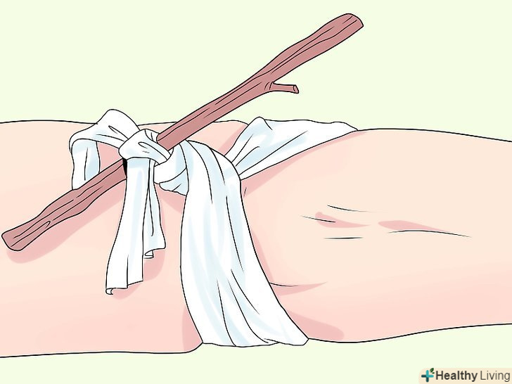 Використовуйте надійний джгут. він повинен бути досить широким, щоб не порізати шкіру або м'язи – а також довгий і досить міцний.- спробуйте застосувати мотузку-можливо, обернувши її попередньо сорочкою.