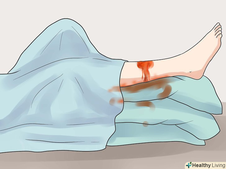 Покладіть потерпілого плазом і підніміть ноги або підкладіть подушку під тіло так, щоб воно було трохи вище голови. якщо поранена кінцівка, підніміть її.