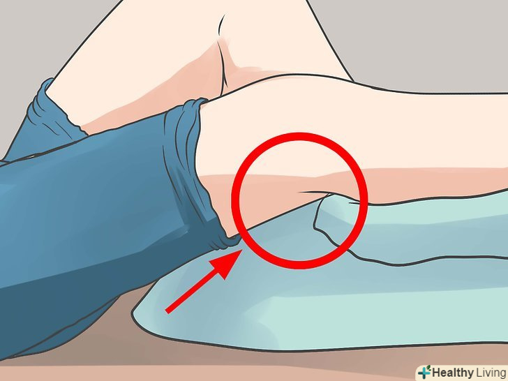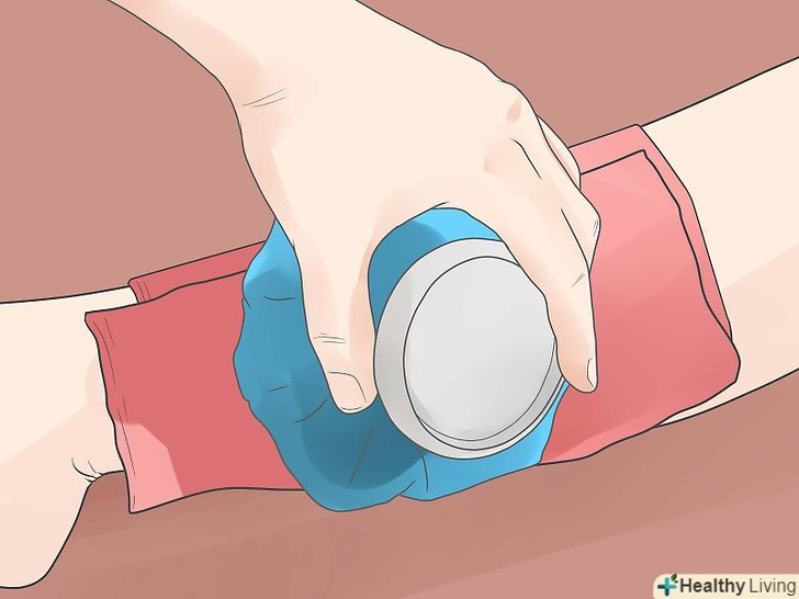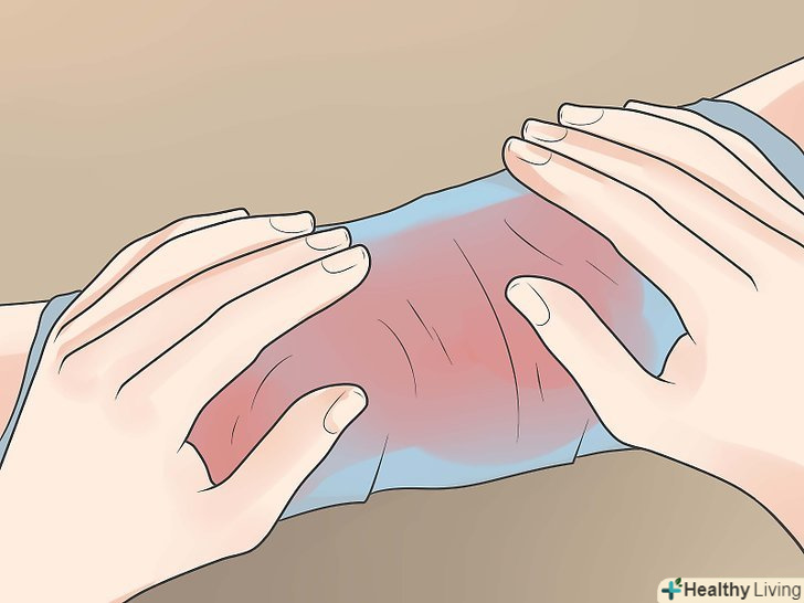 Якщо кровотеча не зупиняється, Знайдіть найближчу до рани артерію і натисніть на неї, тримаючи пальці плазом навпроти кістки.- На руці точки для притиснення артерії розташовані трохи нижче внутрішньої сторони пахви і трохи вище ліктя. Також ці точки розташовані на зап'ясті.