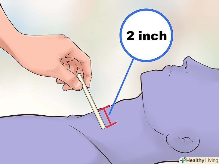 Необхідно вставити предмет, схожий на трубку, в рану для підтримки дихання. для цього ви можете помістити соломинку для коктейлів в трахею на 5 см.- Для того щоб переконатися, що соломинка правильно розташовується в дихальних шляхах потерпілого, можна вдихнути через неї: якщо все правильно, то повітря повернеться. [9]