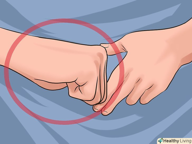 Накрийте долонею другої руки кулак. переконайтеся, що великий палець не торкається тіла потерпілого, щоб знизити ризик травмування.