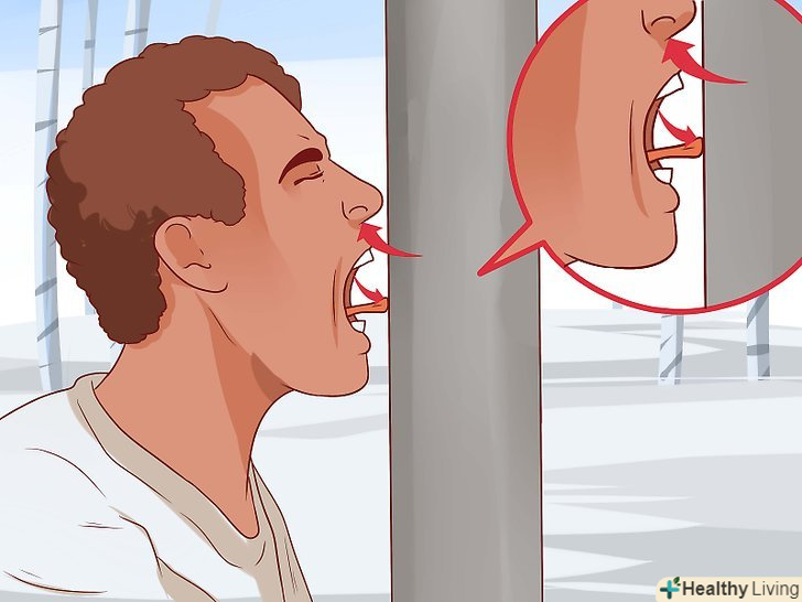 Глибоко вдихніть, а потім видихніть тепле повітря на свою мову. видихніть кілька разів, поки ваш язик не відклеїться. Можливо, вам доведеться прикрити рот руками, щоб тепле повітря залишався навколо мови.- Зробіть так кілька разів, поки метал не нагріється, а ваш язик не відтане.