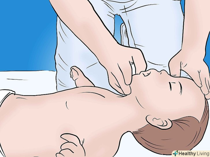 Відкрийте дихальні шляхи.обережно відкиньте голову дитини назад, піднявши підборіддя, щоб відкрити дихальні шляхи. Дихальні шляхи маленькі, тому рух не повинен бути дуже різким. Знову, перевірте дихання протягом не більше 10 секунд.