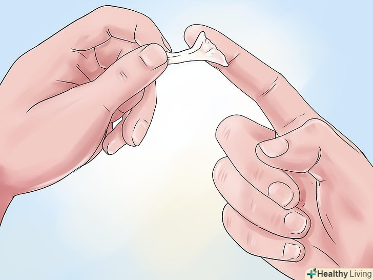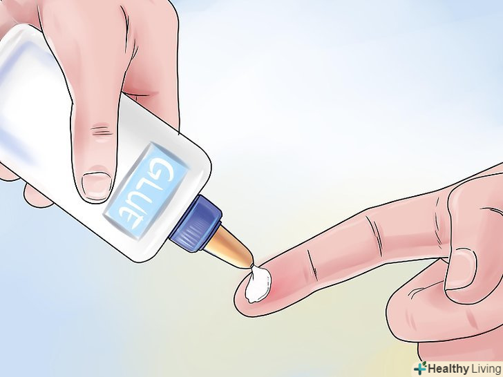 Нанесіть клей на скалку. можна використовувати самий звичайний прозорий клей. Нанесіть шар клею на ділянку шкіри з скалкою і на прилеглу ділянку. [11] Клей повинен бути досить густим, щоб повністю покрити скалку.- Не використовуйте супер клей. Використовуючи клей, який миттєво засихає, ви створите собі нову проблему – крім скалки вам доведеться позбавлятися від клею. [12]