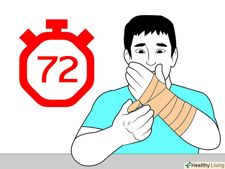 - Прикладіть компрес до травмованого зап'ястя на 20 хвилин, потім зніміть компрес на 90 хвилин. Рекомендується прикладати компрес якомога частіше, хоча б 2-3 рази кожен день (протягом перших 72 годин після травми). [37]