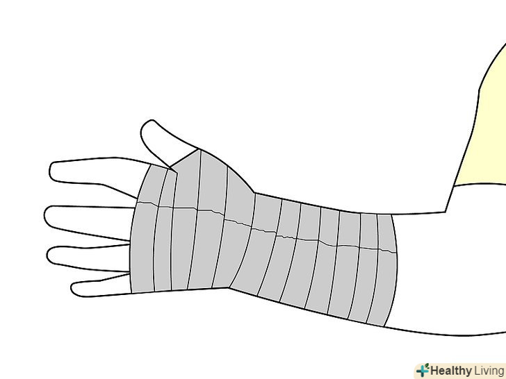 - Травмоване зап'ястя заживає найкраще, коли пов'язка охоплює область від пальців і долоні до ліктя. Для такої пов'язки може знадобитися два еластичних бинта, за допомогою яких вийде повністю обернути пошкоджене зап'ястя. [22]