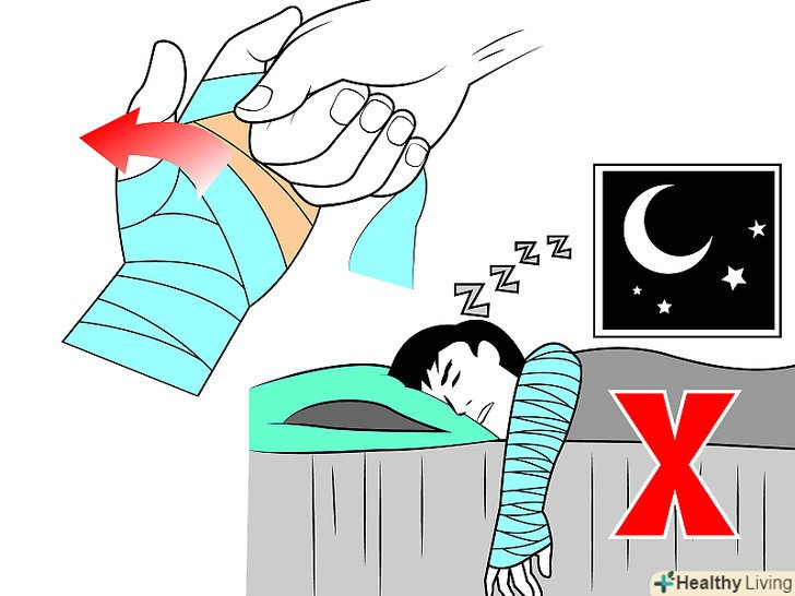 - Не лягайте спати з пов'язкою. У деяких випадках лікар може порекомендувати накладати пов'язку якимось з описаних способів на ніч. Дотримуйтесь рекомендацій лікаря. [44]