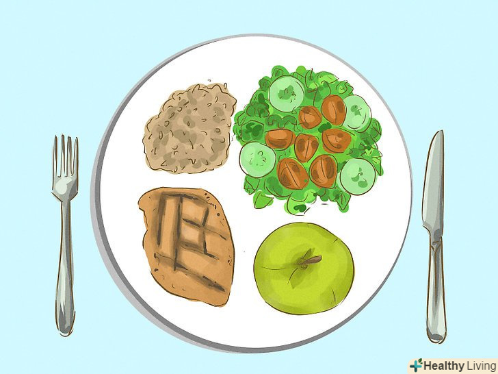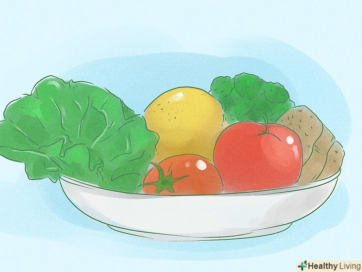 Їжте здорове м'ясо. коли ви їсте м'ясо, вибирайте нежирні сорти. Їжте більше пташиного м'яса без шкірки. Обмежте споживання червоного м'яса.- Купуйте м'ясо птиці, яка вирощена в природних умовах, і не містить ні гормонів, ні антибіотиків. [33]