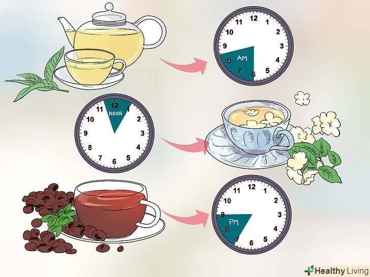 Пийте чай щодня.Нехай це увійде в звичку. Найкраще пити чай в певний час: чашку вранці, чашку в обід, а перед сном - трав'яний чай або чай без кофеїну (вони теж ефективні, хоча і в меншій мірі).- Вранці пийте чай замість кави.