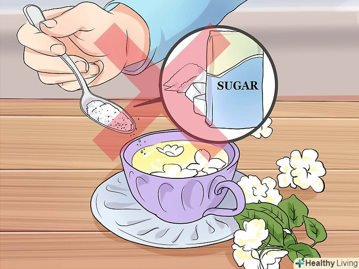 Вивчіть інгредієнти на етикетці.у продажу є стільки багато різних видів чаю, що іноді не знаєш з якого почати. Хорошим варіантом буде спочатку вивчити інгредієнти на етикетці. Якщо чай містить цукор або підсолоджувачі, покладіть його назад на полицю.[5]- Це не означає, що вам потрібно уникати ароматизованих сортів зеленого чаю. Так, деякі з них містять добавки цукру, а інші ні, але якщо ви зможете дотримуватися повністю натуральних інгредієнтів, це буде краще для вас і для вашої талії.