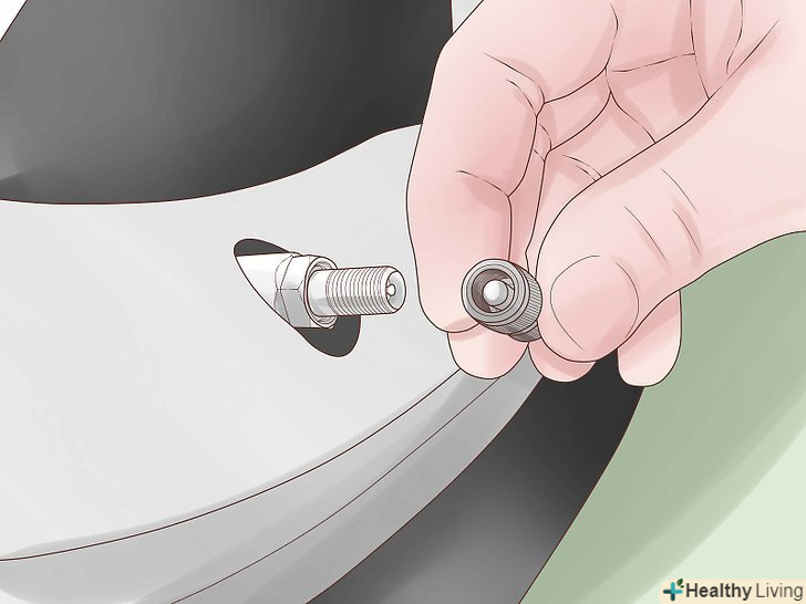 Потім відкрутіть золотник клапана колеса і випустіть залишився повітря з покришки, потім прикріпіть насадку герметика зі штоком на клапан колеса і натисніть на кнопку, щоб залити вміст.