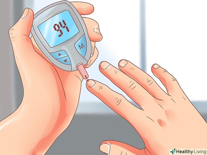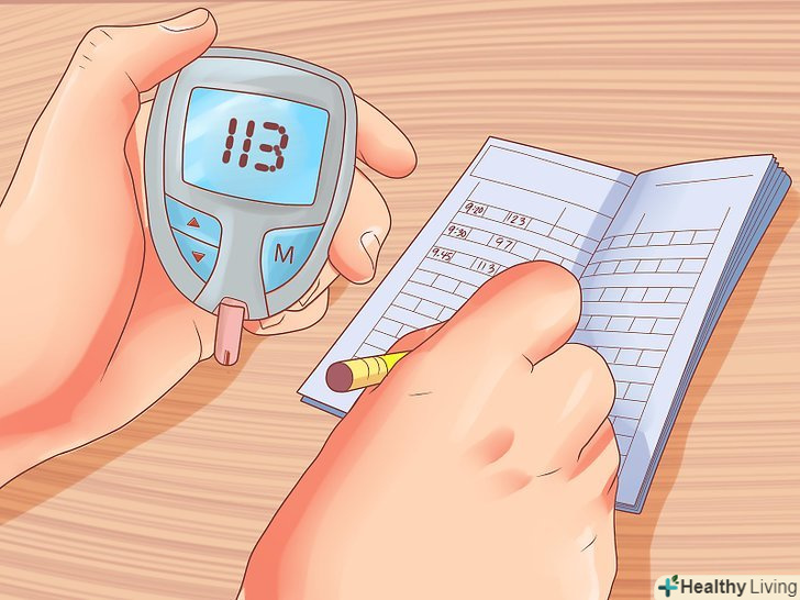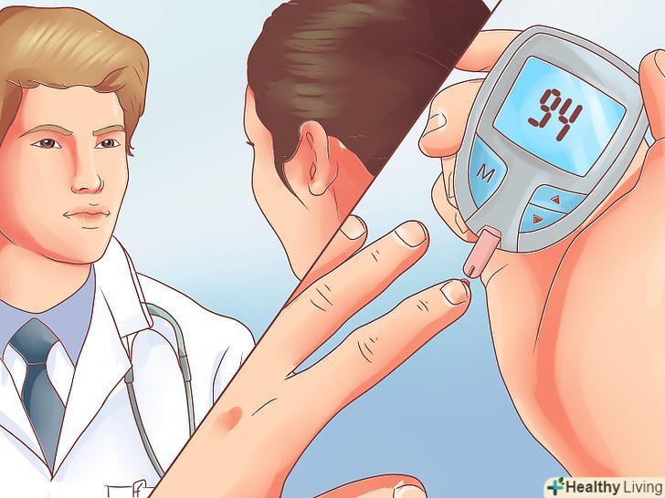 Слідкуйте за рівнем цукру в крові.проконсультуйтеся з лікарем, щоб визначити, як часто ви повинні робити це. Залежно від плану лікування, лікар порадить Вам перевіряти рівень цукру в крові щодня або кілька разів на тиждень.[22]- Якщо у вас немає можливості скористатися медичною допомогою, ви можете придбати глюкометр і тест-смужки в аптеці і провести необхідне обстеження.