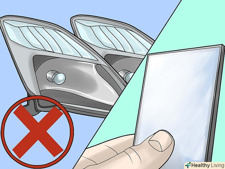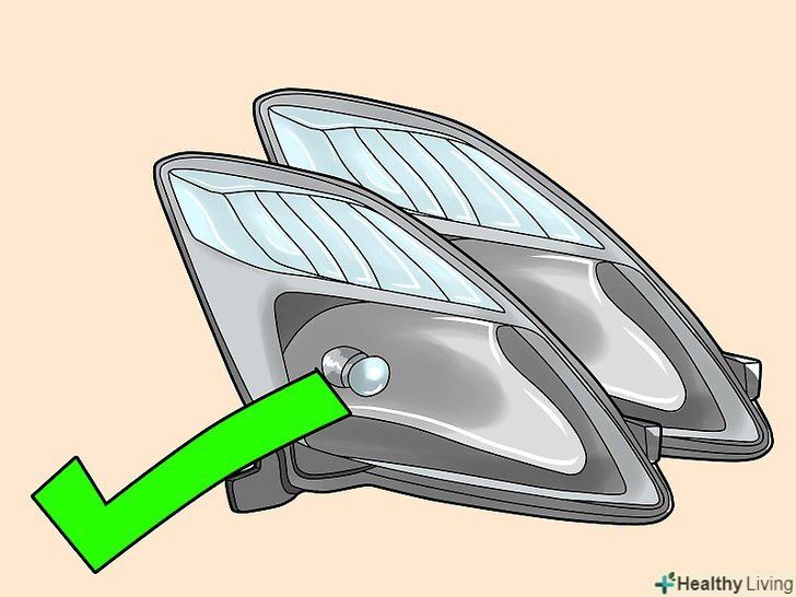 Визначте верх гумового пильовика і втисніть маленьку дірку поверх лампи натискаючи при цьому на всі чотири прямокутника на пильовику. Це зробити досить складно. Дзеркало, розташоване перед пильовиком, дуже сильно допоможе вам в цьому. Попросіть помічника вам допомогти тримати дзеркало. Порада: це можна зробити без дзеркала. Потрібно натиснути діркою на лампу і прокручувати навколо задньої частини лампи. Але переконайтеся що всі чотири виступи в правильному положенні (один з чотирьох виступів більше ніж три інших).
