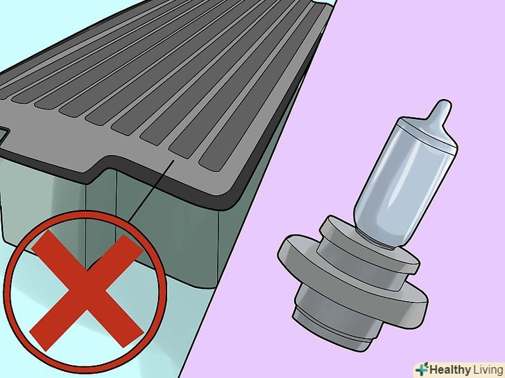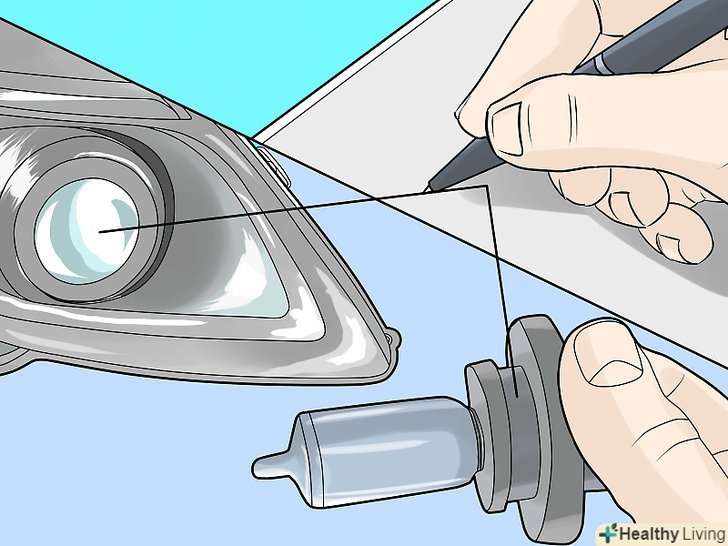 Не торкаючись до самого скла, встановіть нову лампочку, інакше вона буде брудною (використовуйте гумові рукавички).порада: під час установки спостерігайте через лінзу за позицією лампочки. Це дозволить вам переконатися в тому, що лампочка стала правильно, перед тим як зафіксувати її власником.