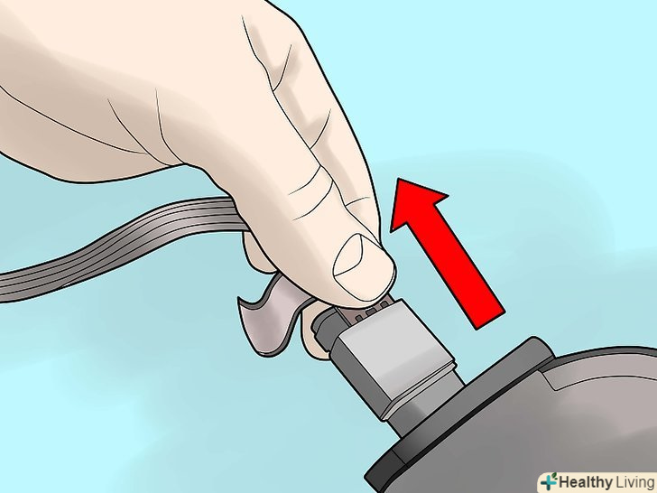 Від'єднайте електричне підключення до лампи, стоячи при цьому біля водійського крила автомобіля, дивлячись у бік пасажирського крила.Засуньте тильну сторону долоні, зверненої вперед так, щоб білий квадратний пластиковий роз'єм лампи знаходився між вказівним і середнім пальцями. Роз'єднати штекер з роз'ємом. Не прибирайте його до тих пір, поки ви не запам'ятаєте розташування дірок в роз'ємі для того, щоб потім правильно його підключити.