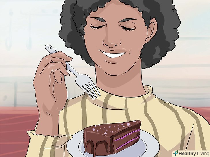 Час від часу дозволяйте собі поласувати улюбленими продуктами.іноді виникає тяга до певних продуктів, і час від часу можна піддаватися цій спокусі і з'їсти шматочок пирога або порцію морозива. Так ви не будете відчувати, ніби втрачаєте щось, і не будете з'їдати занадто багато, щоб компенсувати свою втрату.- Дотримуйтесь контроль розміру порцій, навіть коли ви їсте улюблені некорисні продукти. Зверніть увагу на розмір порцій ваших улюблених десертів і дотримуйтеся їх.