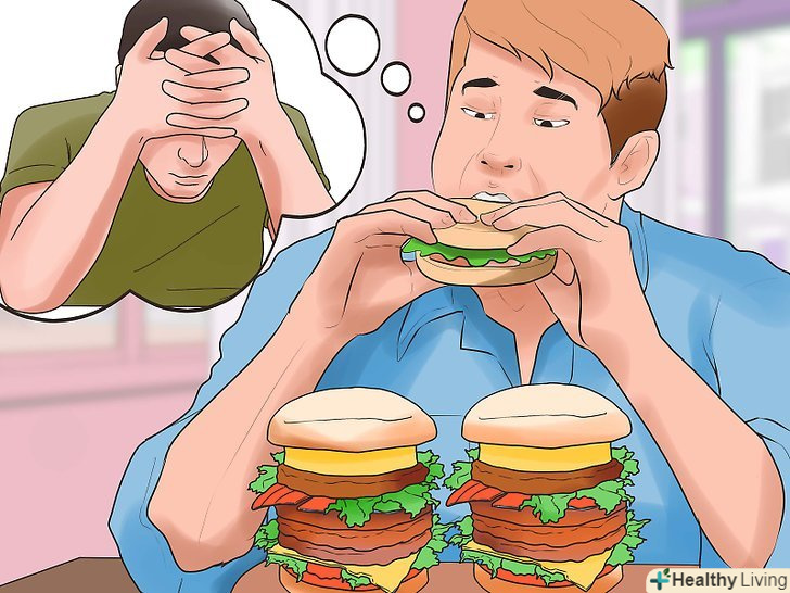 Дізнайтеся більше про емоційне переїдання.завдяки своєму щоденнику харчування Ви можете виявити, що часто вдаєтеся до їжі для того, щоб впоратися з негативними емоціями, або ж просто від нудьги. Чи намагаєтеся ви що-небудь з'їсти кожен раз, коли Вам сумно, ви відчуваєте стрес, гнів, тривогу, самотність, нудьгу або втому?[35] ви можете намагатися придушити негативні емоції за допомогою їжі. Однак їжа ніяк не пов'язана з причинами, що викликали ці емоції, і тому вона призводить лише до короткочасного полегшення, після чого ви знову відчуваєте себе погано.[36]- При стресі у вашому організмі виділяється кортизол, званий також "гормоном стресу", що призводить до реакції організму за схемою"боротьба або Втеча". Ця реакція може викликати підвищення апетиту і потяг до смачної, але малокорисної їжі (зазвичай це висококалорійні продукти, що містять багато цукру), що дозволяє організму швидко отримати енергію, що вимагається для такої реакції.[37] якщо ви відчуваєте хронічний стрес, викликаний школою, роботою, сім'єю або навколишнім середовищем, у вас підвищений ризик постійного емоційного переїдання.[38]