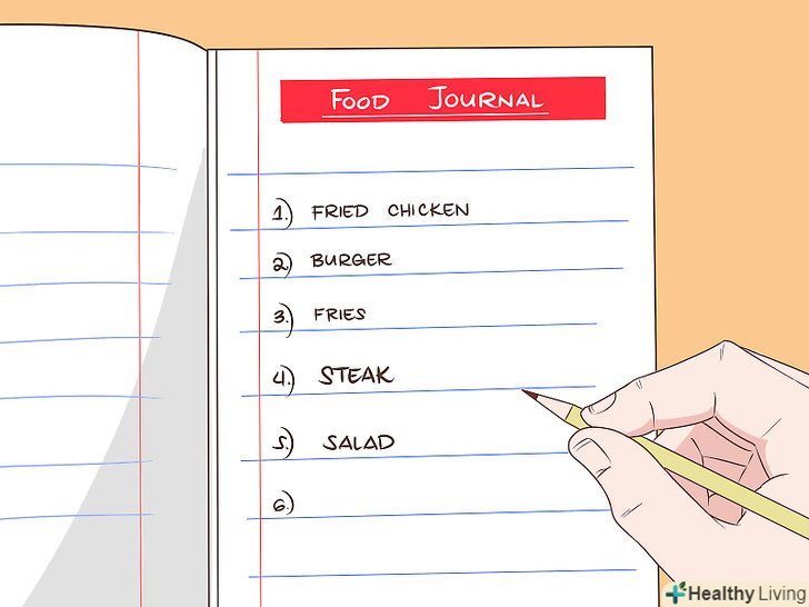 Почніть вести щоденник.ведення щоденника-відмінний спосіб почати вести більш здоровий спосіб життя. Ви можете робити нотатки, записувати свої цілі, відстежувати їх, а також вестищоденник харчування . Все це допоможе вам зрозуміти, в якому напрямку вам слід рухатися, а також буде хорошою мотивацією для досягнення ваших цілей.- Можливо, слід почати з невеликих заміток про те, що вам порадив лікар, а також із записів своєї ваги, індексу маси тіла і окружності талії.
