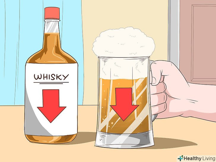 Обмежте вживання алкоголю.надмірне вживання алкоголю може привести до збільшення ваги або до його патологічного зниження, крім того, алкоголь негативно впливає на ваш стан здоров'я в загальному.- Лікарі і фахівці в сфері охорони здоров'я зазвичай рекомендують жінкам випивати не більше одного алкогольного напою в день, а чоловікам — не більше двох алкогольних напоїв в день.[18]