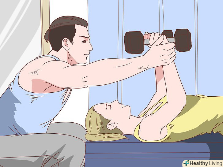 - Знайдіть друга, з яким зможете разом тренуватися. Ви можете навчити один одного своїм улюбленим вправам, а також ви будете мотивувати один одного, коли настане напад ліні.[22] до речі, немає нічого поганого в невеликому змаганні!