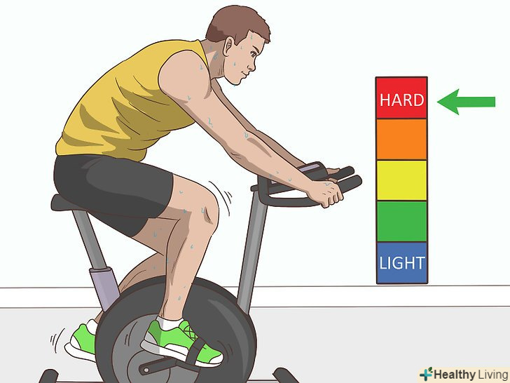 Збільште навантаження і тривалість тренувань.найбільше на рівень феритину впливають сильні фізичні навантаження. Це означає, що ваші вправи повинні бути більш інтенсивними. Щоб знизити рівень феритину, ваша тренування повинна бути більш важкою і більш тривалою. Проконсультуйтеся з лікарем про те, які вправи підходять вам найбільше, і дізнайтеся, які програми або фахівці можуть вам в цьому допомогти.[16]- Якщо у вас немає часу на вправи,інтервальне тренування відмінно підійде для збільшення інтенсивності тренувань. Високоінтенсивні інтервальні тренування допоможуть вам спалити значну кількість калорій за короткий проміжок часу, а також приведуть до можливого зниження рівня феритину.