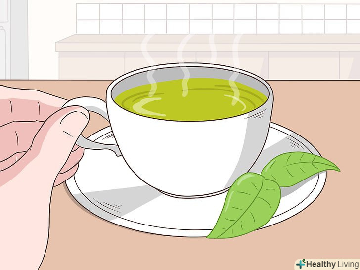 Пийте зелений чай.у зеленому чаї містяться сильні антиоксиданти, які зв'язуються з залізом і знижують його поглинання організмом. Наприклад, якщо ви збираєтеся з'їсти багату залізом їжу, то чашка зеленого чаю під час їжі дозволить знизити його вплив на рівень феритину.[8]- Кава теж негативно позначається на поглинанні заліза, якщо чай доведеться вам не до смаку.[9]