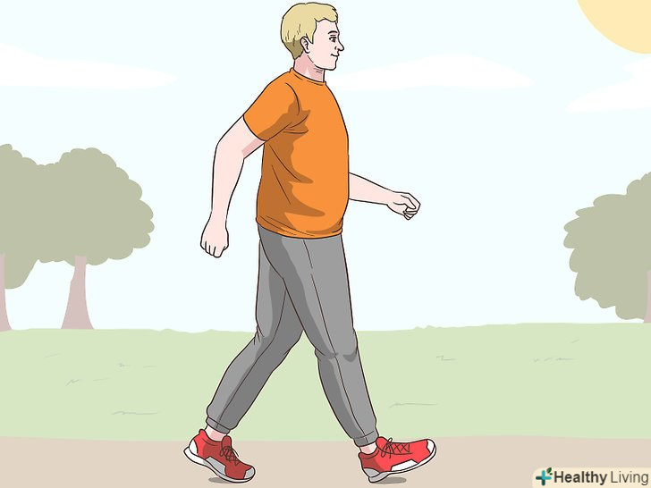 Почніть регулярно ходити на прогулянку.Ходьба — це відмінний спосіб змусити своє тіло рухатися і зміцнити фізичну силу, особливо якщо ви ведете малорухливий спосіб життя. Поступово прискорюйте крок і збільшуйте дальність або тривалість прогулянок.[14]- Крім занять спортом, намагайтеся прогулюватися хоча б по півгодини в день. Перехід з ходьби на біг може сильно знизити рівень феритину.