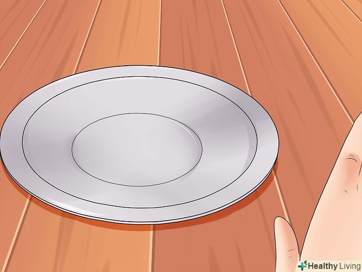 Використовуйте великі тарілки.їсти їжу з великих тарілок, ніж зазвичай — - це психологічний трюк, який змушує ваш мозок повірити, що ви їсте менші порції їжі. Таким чином ви можете з'їсти більше, ніж якби їжею була повна до країв маленька тарілочка, навіть якщо кількість їжі в обох випадках буде однаково.- Вважається, що використання яскравих тарілок і естетично привабливе оформлення страв також позитивно впливає на апетит.