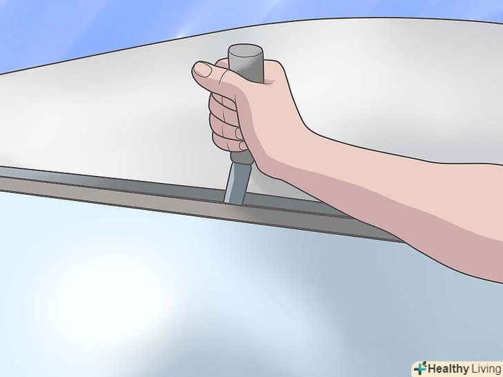 Придбайте нове лобове скло, що підходить до вашої моделі. Ви зможете Придбати нове лобове скло або купити його на авторозборці, в будь-якому випадку, переконайтеся у відсутності тріщин і відколів, перш ніж розплатитися з продавцем. Якщо ви збираєтеся перевезти нове скло у своєму автомобілі, використовуйте ковдри та простирадла, щоб захистити його від пошкоджень при транспортуванні. Якщо ви купили не нове лобове скло, то його належить підготувати до установки. Вам належить видалити з нього Старий поліуретановий клей або зменшити його товщину приблизно на 1 мм. Це можна зробити пиляє рухом, використовуючи лезо.