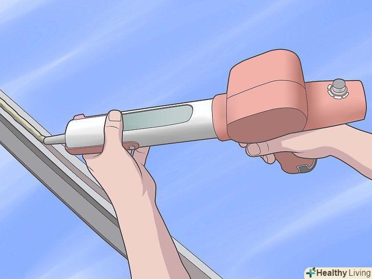 Нанесіть поліуретан за допомогою спеціального пістолета.найкраще новий поліуретан прихоплюється до старого поліуретану, але старий шар повинен бути чистим і знежиреним. Проблема, з який багато хто стикається, - це пил, що сідає на ущільнювач до того як нанесений шар поліуретану. Цей пил піднімається в повітря вітром або, наприклад, проїжджаючими вантажівками. Звичайно, поліуретановий клей можна нанести і без спеціального пістолета, але тоді набагато складніше домогтися рівного шару і уникнути патьоків.