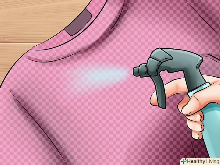 Збризніть сухий одяг оцтом або водним розчином.Так як не всі речі можна постійно прати, а постійно ходити в хімчистку – не вихід, ви можете утримати бактерії на відстані за допомогою оцту і водного розчину. Для одягу, яку можна обробляти тільки хімчистці, приготуйте суміш 50/50 оцту і води, виверніть елемент одягу навиворіт і збризніть трохи розчину на зону пахв. (Для початку протестуйте на невеликій ділянці, щоб одяг не вицвіла). Повторюйте процес перед кожною носкою.