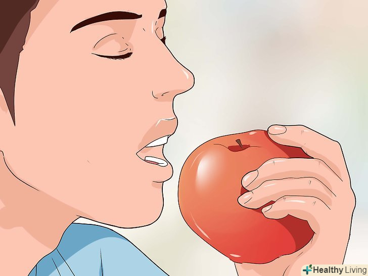 Проведіть "яблучну перевірку".досить проста перевірка допоможе визначити фізичний або емоційний характер вашого голоду. Як правило, емоційний голод проявляється як потреба в конкретній групі продуктів (наприклад, вуглеводи) або як бажання з'їсти конкретне блюдо (наприклад, шоколадний кекс). Фізичний голод можна вгамувати широким діапазоном продуктів.[3]- Подумайте, чи захочете ви перекусити, якщо вам запропонують яблуко, сиру моркву або зелень?