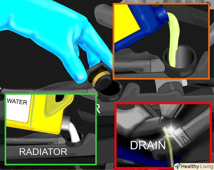 Видаліть з радіатора всю охолоджуючу рідину.після виливання антифризу промийте систему. Для цього можна скористатися спеціальною промивної рідиною для систем охолодження; такий засіб можна купити в будь-якому автомагазині за ціною, еквівалентною 3 доларам. Спосіб застосування, як правило, детально викладений на пляшечці або упаковці.