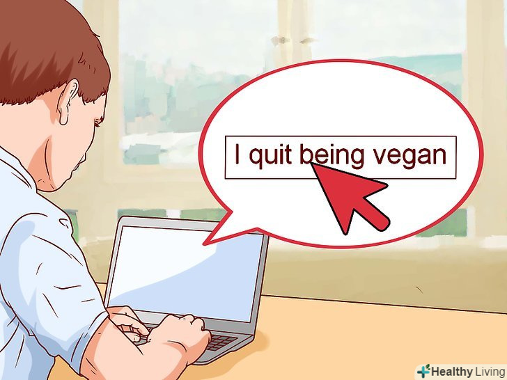 Змиріться з новою системою харчування і способом життя.перехід від системи харчування, яка здавалася вам хорошою, до звичайного раціону може бути непростим. Можливо, ви будете почувати себе винуватим або соромитися того, що ви не змогли бути веганом і розчарували себе. Пам'ятайте: ті рішення, які корисні для вашого здоров'я зараз, могли б неактуальними в момент прийняття рішення бути веганом. Харчуйтеся так, щоб це було корисно для вашого здоров'я і відповідало вашому способу життя.- Не варто думати, що лише ви одні вирішили повернутися до тваринних продуктів. В ході недавнього дослідження було встановлено, що 84% вегетаріанців, включаючи веганів, через якийсь час починають знову їсти м'ясо.[4]