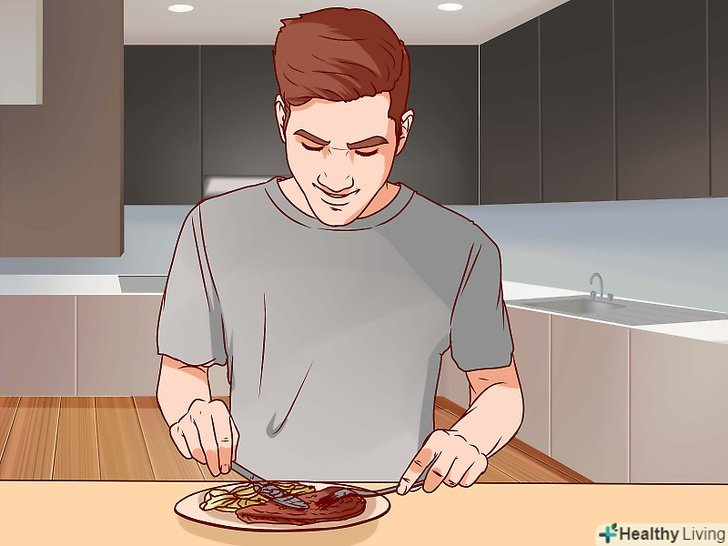 Почніть з малого.якщо ви все своє життя не їли продукти тваринного походження (або хоча б кілька років), починати раптово їсти їх не можна, оскільки вам стане погано. Організму потрібен час на те, щоб пристосуватися до будь-яких різких змін в харчуванні.[1][2] можливо, після повернення до тваринної їжі кілька днів ви будете відчувати здуття живота і дискомфорт.- Якщо ви довгий час не їли м'ясо, вам буде важко. Переходьте до нової системи харчування повільно і обережно.