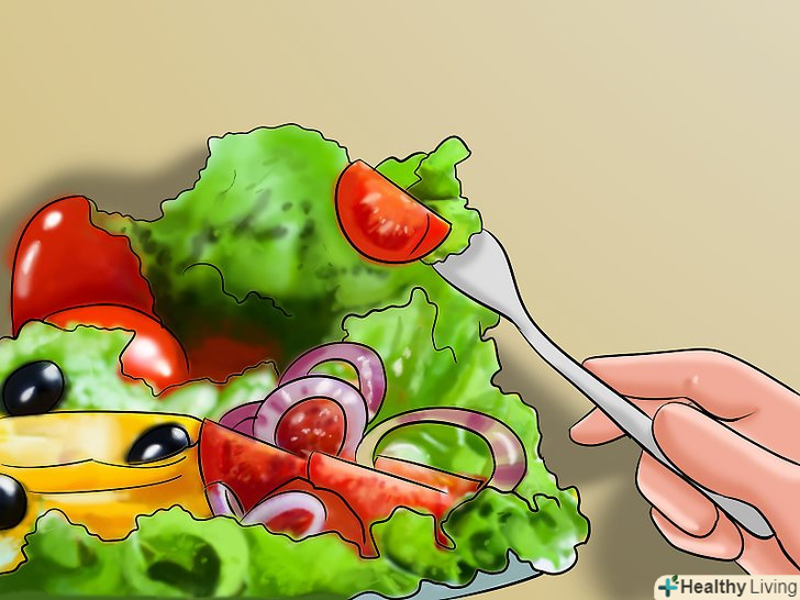 - Їжте салати щодня. Вони мають низьку калорійність і допомагають скинути вагу. Намагайтеся, щоб салат обов'язково був присутній у вашому щоденному раціоні.[27]
