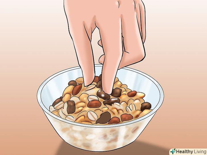 Приготуйте правильний сніданок.існує набагато більше варіантів корисного сніданку, ніж традиційний - з яєць, вівсянки і сосисок.- Спробуйте змішати арахісове масло, вівсянку і родзинки. Для цього знадобиться 1 склянка вівсяних пластівців, 1 столова ложка арахісового масла і 1/4 чашки родзинок. Вийде швидкий і легкий сніданок. В якості корисного напою виберіть 1 склянку апельсинового соку.