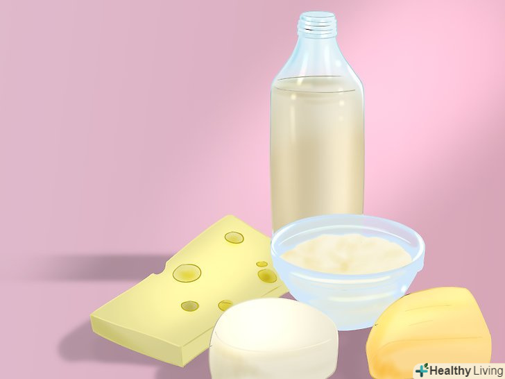 - Вибирайте знежирені або нежирні молочні продукти, необхідні організму. Вживайте щодня три чашки будь-якого багатого кальцієм продукту, будь то молоко, сир або молочні продукти без лактози.[10]