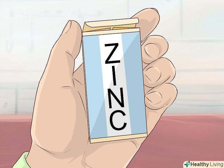 Приймайте цинк.необхідно, щоб ваш раціон містив достатню кількість цього елемента, проте занадто багато цинку може негативно вплинути на роботу імунної системи.[46]- Якщо прийняти цинк протягом перших 24 годин, після того як з'явилися симптоми застуди, то їх можна полегшити і зменшити тривалість хвороби.[47]