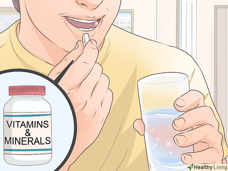 Подумайте про прийом харчових добавок з вітамінами та мікроелементами.якщо ви вважаєте, що отримуєте недостатньо різних поживних речовин разом з їжею, подумайте про те, щоб щодня приймати мультивітаміни.[27]- Перш ніж вносити будь-які зміни в режим прийому ліків, зокрема почати приймати вітаміни або перейти на інші харчові добавки, обов'язково проконсультуйтеся з лікарем.