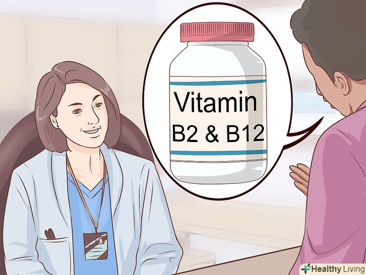 Дізнайтеся у лікаря, чи не треба вам додатково приймати вітаміни B2 і B6.було встановлено, що ці вітаміни групи B допомагають запобігати інфекційним захворюванням.[37] до природних джерел вітаміну B2 відносяться темно-зелені і листові овочі, молочні продукти і горіхи. Природними джерелами вітаміну B6 є морепродукти і м'ясо птиці.- Дослідження на тваринах показали, що вітамін B2, або так званий рибофлавін, зміцнює імунну систему. В даний час проводяться дослідження на людях.[38]
