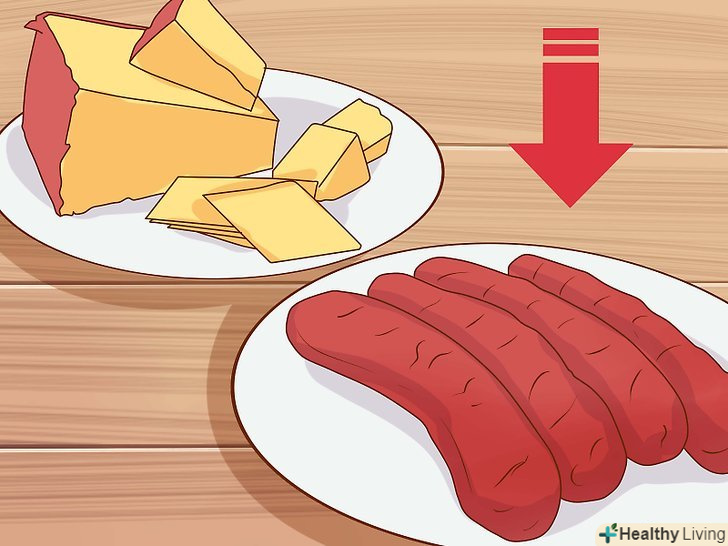 - Уникати насичених жирів, наприклад, вершкового масла, твердих сирів, ковбас і сосисок, вершків, кокосового і пальмового масла, молочного шоколаду і сала.