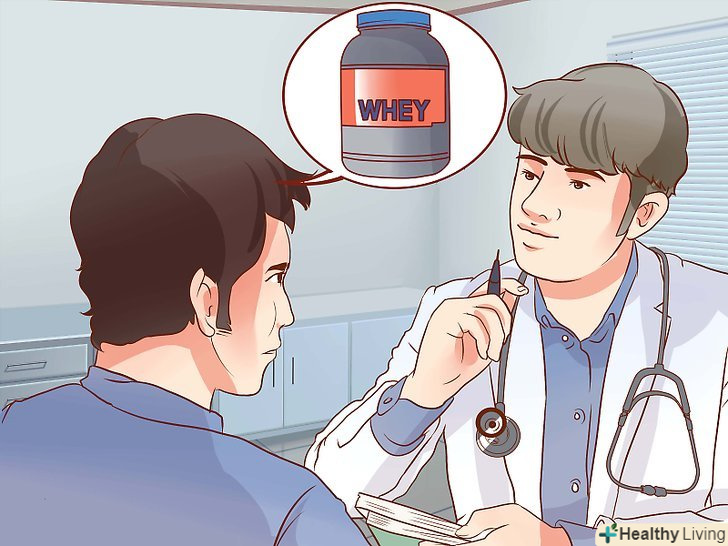 Обговоріть з лікарем харчові добавки.дослідження багатьох натуральних харчових добавок не довели, що вони знижують рівень холестерину. Обов'язково проконсультуйтеся з лікарем, якщо ви збираєтеся приймати будь-яку харчову добавку, оскільки вона може взаємодіяти з іншими ліками, які ви приймаєте. Законодавство не регулює харчові добавки досить строго, тому дозування препаратів і інгредієнти біодобавок можуть варіюватися. Особливо важливо обговорити з лікарем прийом добавок, якщо ви вагітні, годуєте грудьми або збираєтеся давати харчову добавку дитині. Проте, багато людей підтверджують позитивний ефект від прийому наступних добавок:[12][13]- Білок молочної сироватки