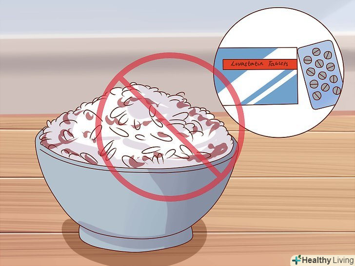 Не вживайте червоні дріжджі разом з ловастатином.Ловастатин є активним компонентом такого препарату, як Мевакор (Mevacor). Дозування ловастатину в харчових добавках ніяк не регулюється, тому невідомо, чи відповідають дозування один одному, тобто ви ризикуєте прийняти потенційно небезпечну кількість препарату, навіть не підозрюючи про це.[14]- Перевіряйте склад всіх харчових добавок з червоними дріжджами. Якщо вони містять ловастатин, не приймайте їх.